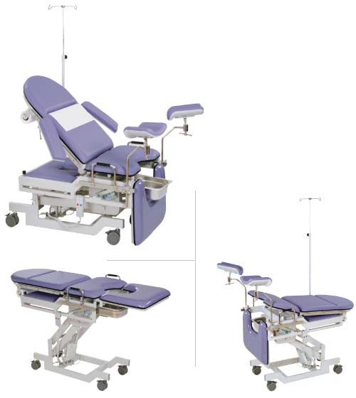 Подколенная опора (2 шт), поручень (2 шт), держатель капельницы (1 шт), держатель рулона одноразовых простыней (1шт), покрытие стола (1 шт), гинекологическая емкость (1 шт)