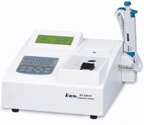 RT-2201C - одноканальный анализатор для исследования состояния сверты вающей системы крови. Анализатор позволяет оценить основные параметры и компоненты свертывающей системы путем измерения времени свертывания крови пациента с различными реагентами.